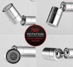 El Grifo agua 360⁰ está diseñado para adaptarse tanto al baño como a la cocina, ofreciendo una experiencia mejorada en cualquier espacio. Su capacidad de giro total permite un uso flexible, ideal para tareas como el lavado de alimentos, utensilios, o incluso el rostro. Además, su diseño compacto y elegante se integra perfectamente en cualquier estilo de decoración, aportando funcionalidad y estética.