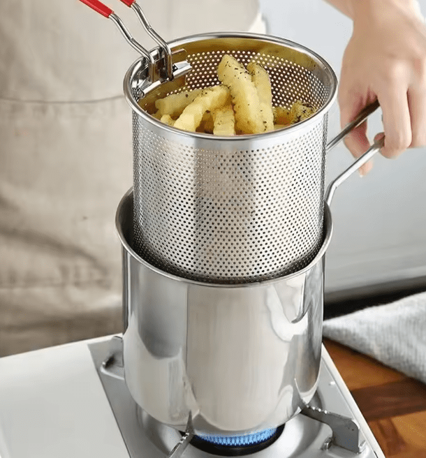 Olla Freidora con Canasta Escurridora de Acero Inoxidable — Cocina Fácil, Segura y Rápida